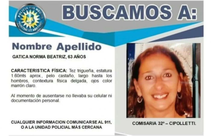 La desaparición de Gatica había sido denunciada en la Comisaría 32° por su familia, luego de que se retirara de su casa en circunstancias confusas. De acuerdo con fuentes de la investigación, la mujer habría salido tras una discusión con uno de sus hijos, cerca de las 2 de la mañana, sin llevar consigo su teléfono celular ni documentación personal, lo que profundizó la preocupación de sus allegados.
