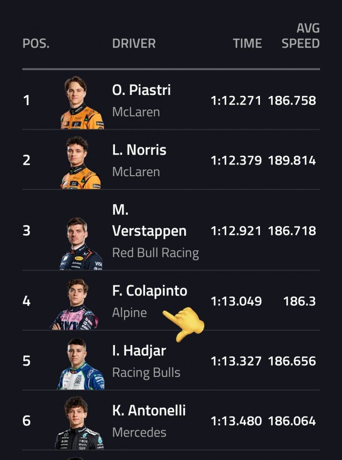 Sobre lo ocurrido el sábado, Alpine explicó que Colapinto se vio perjudicado por el tráfico en la clasificación, aunque consideraba posible llegar a la Q2. Gasly, en tanto, logró avanzar un poco más, pero quedó 14° a solo 0,150 segundos, una muestra de lo ajustado que está todo en la F1 moderna.