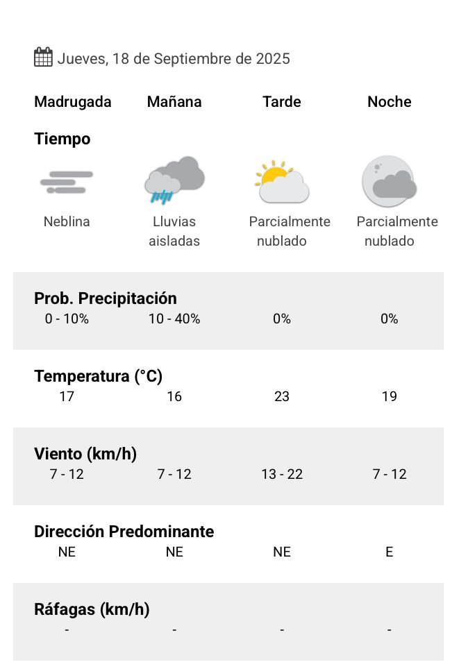 De acuerdo al parte del Servicio Meteorológico Nacional, el clima presenta una probabilidad de lluvia de entre 10 y 40 por ciento, y los vientos del noreste correrán a una velocidad de entre 7 y 12 kilómetros por hora. La humedad sería del 76 por ciento, y la visibilidad sería regular.