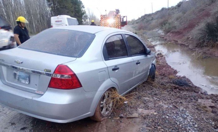 Según lo expresado por la joven conductora, que es oriunda de Centenario, ella circulaba en sentido norte-sur cuando una camioneta se cruzó de manera agresiva y la encerró. En ese instante perdió el control, se salió de la calzada y el auto fue a parar directo a la banquina, quedando atrapado en el barro.