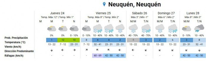Desde este jueves 24 hasta el lunes 28 de julio, se prevé la llegada de un frente frío con fuertes vientos, lluvias intensas, nevadas y bajas temperaturas en toda la provincia. Las autoridades recomiendan circular con extrema precaución y evitar viajes nocturnos.